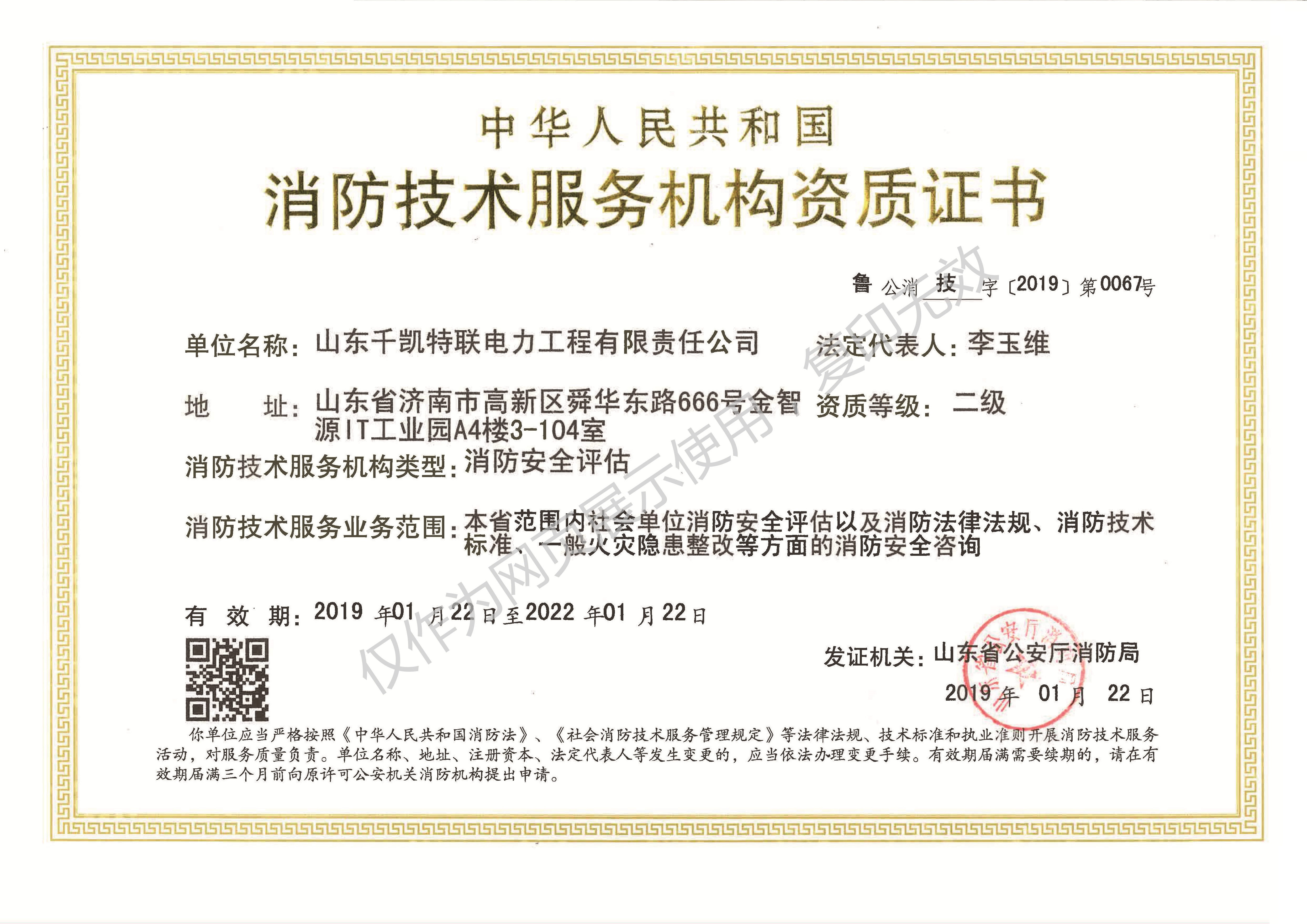 消防技術(shù)服務(wù)機(jī)構(gòu)資質(zhì)二級(jí)證書(shū)