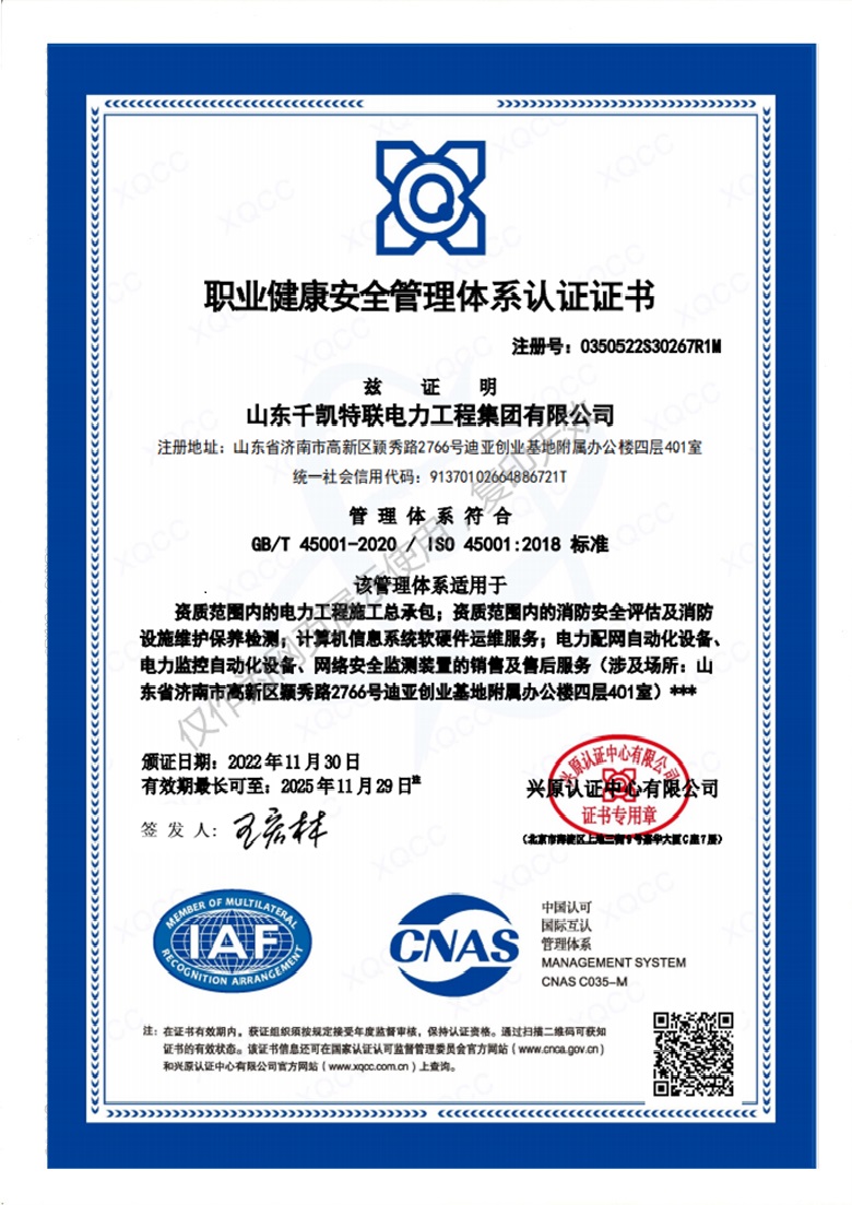 ISO45001職業(yè)健康安全管理體系證書(shū)