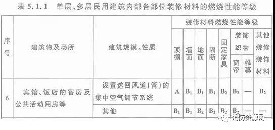 一、單、多層旅館建筑內(nèi)部各部位裝修材料的燃燒性能等級(jí),不應(yīng)低于《建筑內(nèi)部裝修設(shè)計(jì)防火規(guī)范》5.1.1規(guī)定:
