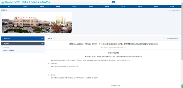 2019年5月15日,我公司成功中標(biāo)“鄒城市人民醫(yī)院消防安全評估項目”。
