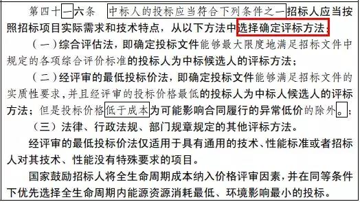 此外,《評(píng)標(biāo)委員會(huì)和評(píng)標(biāo)方法暫行規(guī)定》第二十九條也明確規(guī)定:“評(píng)標(biāo)方法包括經(jīng)評(píng)審的最低投標(biāo)價(jià)法、綜合評(píng)估法或者法律、行政法規(guī)允許的其他評(píng)標(biāo)方法?!?/span>