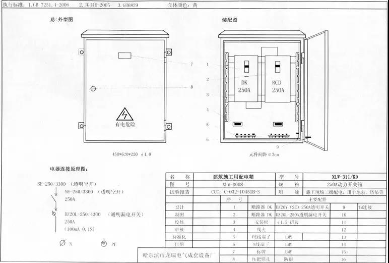 內設400A-630A具有隔離功能的DZ20型透明塑殼斷路器作為主開關,分路設置4-8路采用具有隔離功能的DZ20系列160A-250A透明塑殼斷路器,配備DZ20L(DZ15L)透明漏電開關或LBM-1系列作為漏電保護裝置,使之具有欠壓、過載、短路、漏電、斷相保護功能,同時配備電度表、電壓表、電流表、兩組電流互感器。漏電保護裝置的額定漏電動作電流與額定漏電動作時間的乘積不大于30mA.S。最好選用額定漏電動作電流75-150mA,額定漏電動作時間大于0.1S小于等于0.2S,其動作時間為延時動作型。