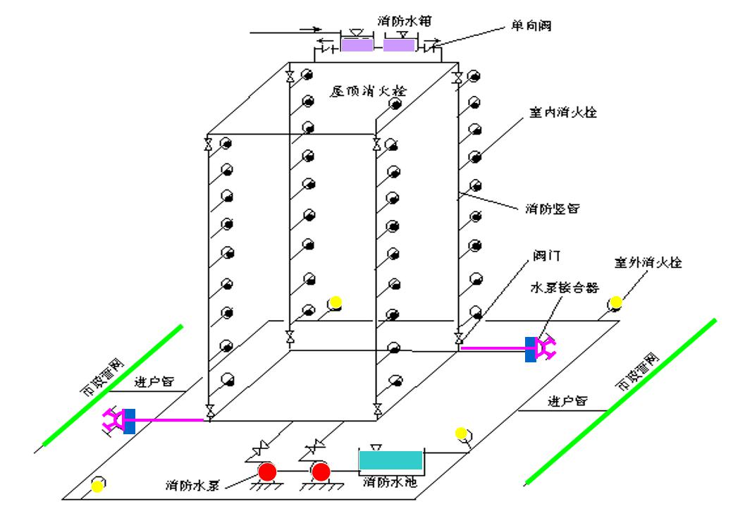 注:建筑高度不大于27m的住宅建筑,設(shè)置室內(nèi)消火栓系統(tǒng)確有困難時(shí),可只設(shè)置干式消防豎管和不帶消火栓箱的DN65的室內(nèi)消火栓。
